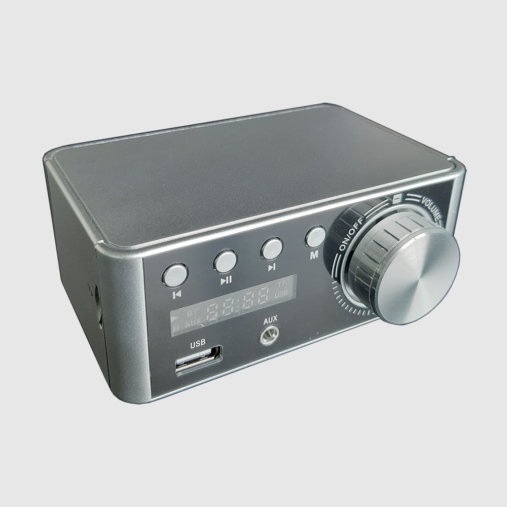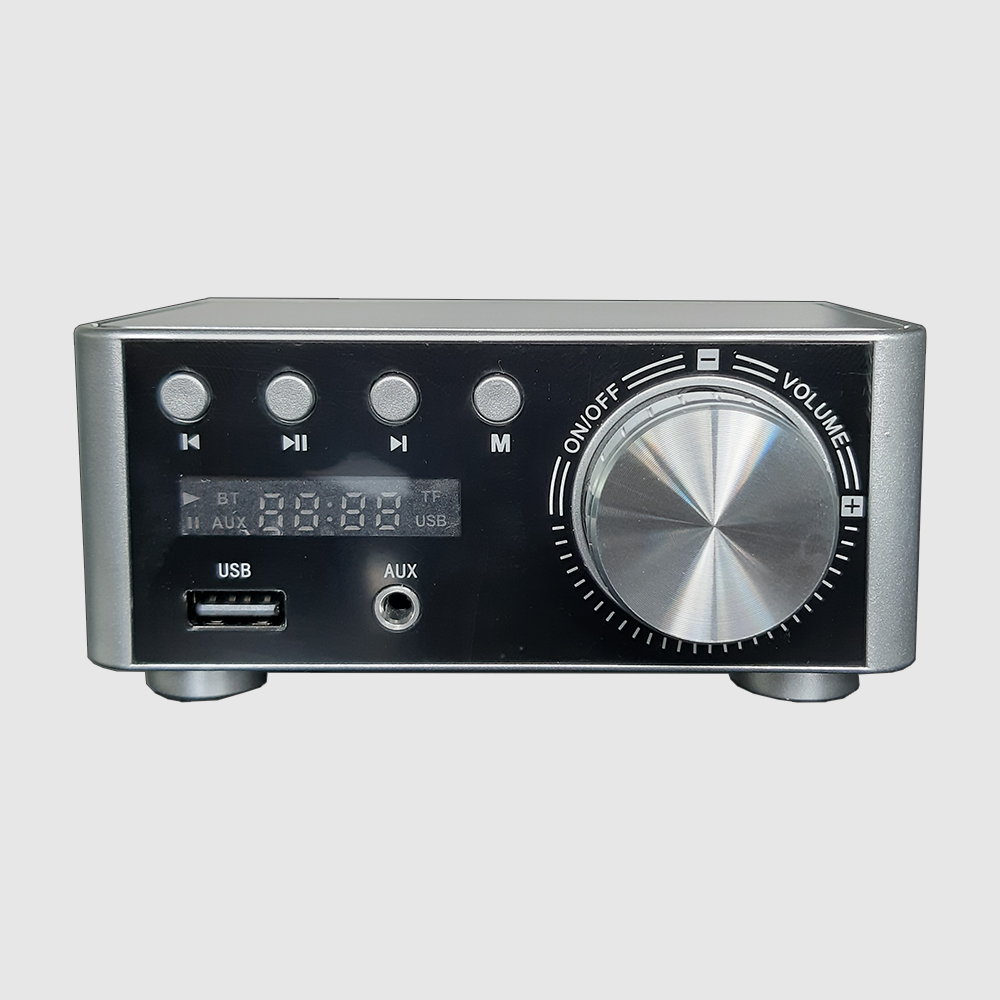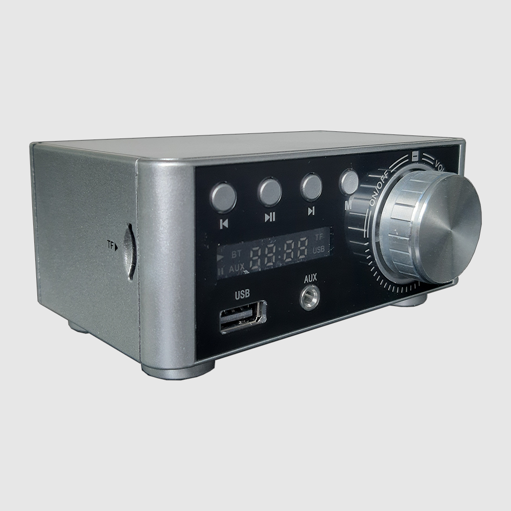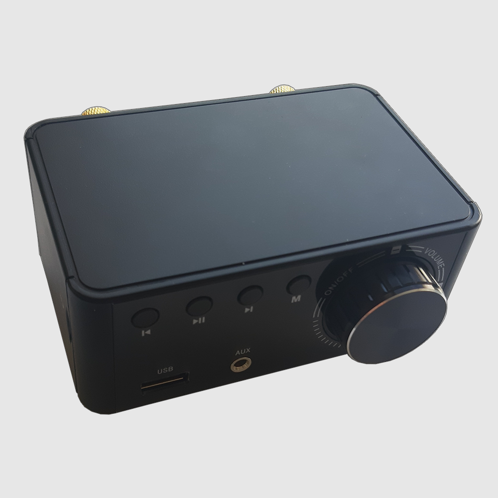 آمپلی‌فایر MiniAmp تمام اهمی دارای صفحه نمایشگر، دارای کلید ولوم، ورودی USBو SDکارت، بلوتوث، ورودی AUX، ورودی برق 9 تا 24 ولت DC (نیاز به آداپتور جداگانه دارد)