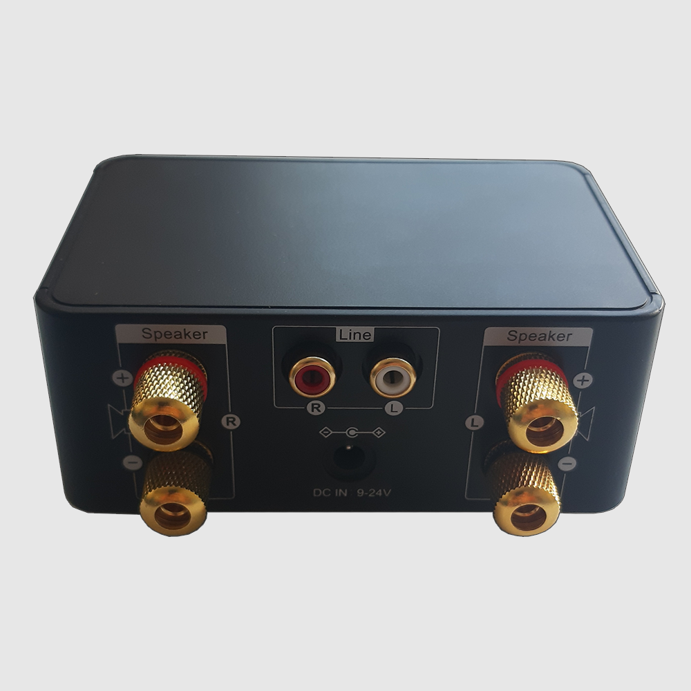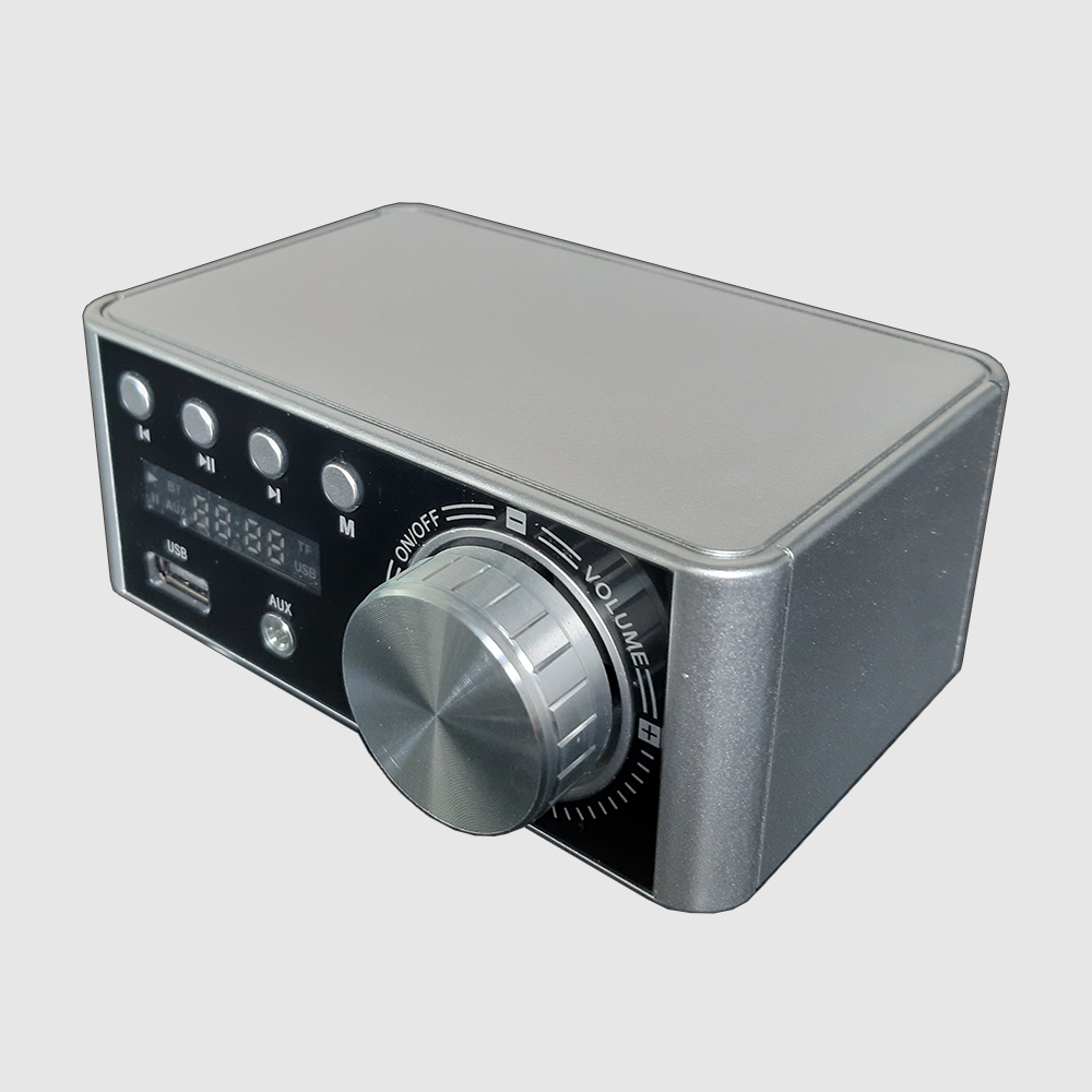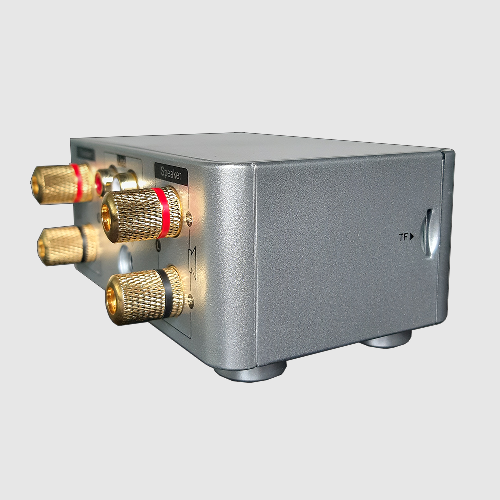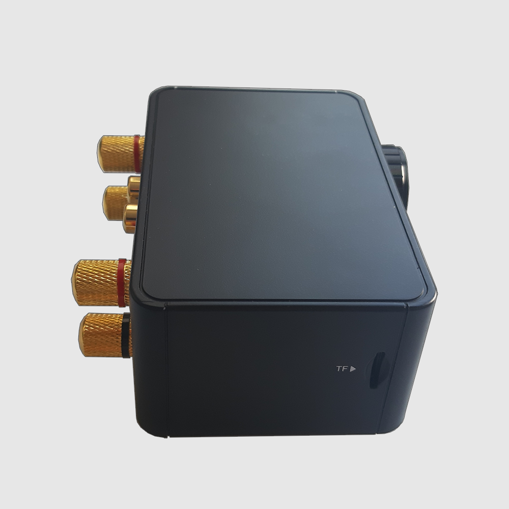 آمپلی‌فایر MiniAmp تمام اهمی دارای صفحه نمایشگر، دارای کلید ولوم، ورودی USBو SDکارت، بلوتوث، ورودی AUX، ورودی برق 9 تا 24 ولت DC (نیاز به آداپتور جداگانه دارد)